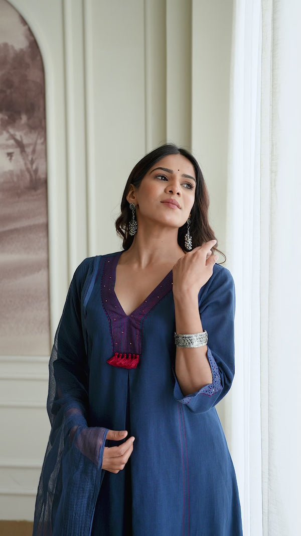 Indigo Printed Cotton Kurta Set with Dupatta