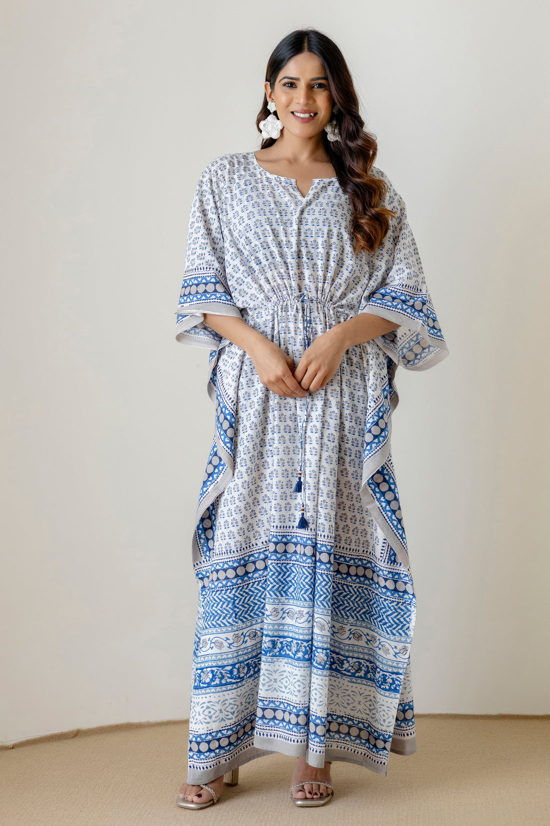 Block Print Cotton Kaftan with Adjustable Drawstring Waist