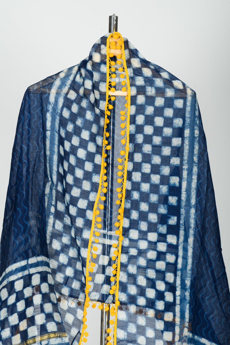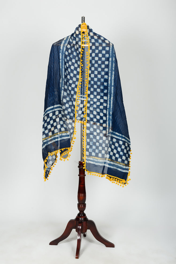 Chanderi Dabu Block Printed Dupatta With Lace