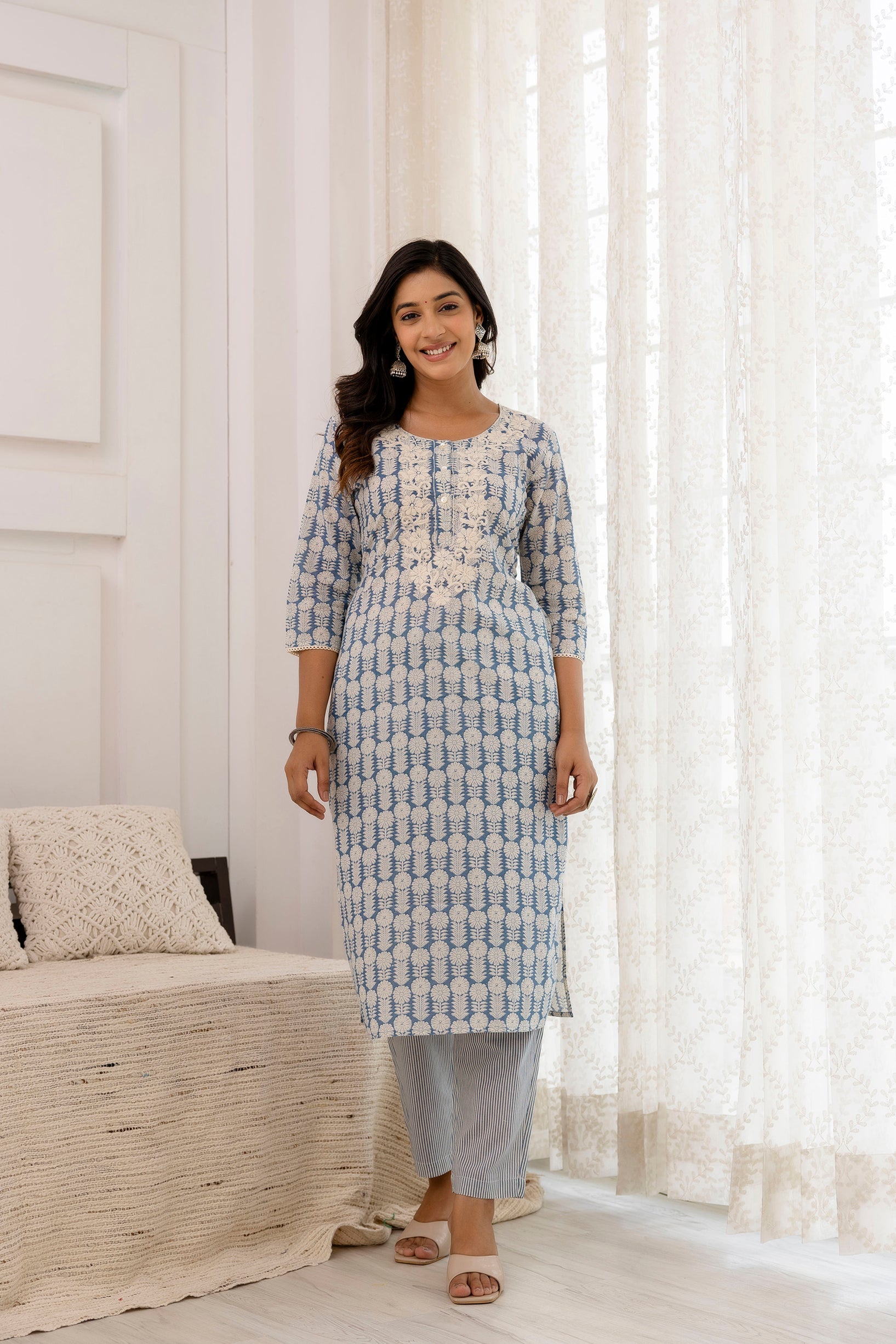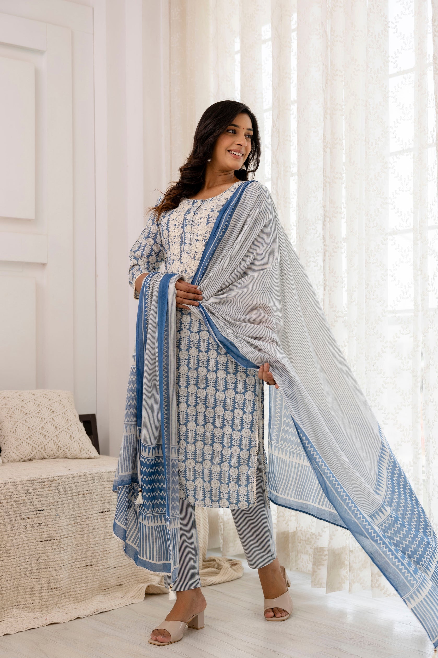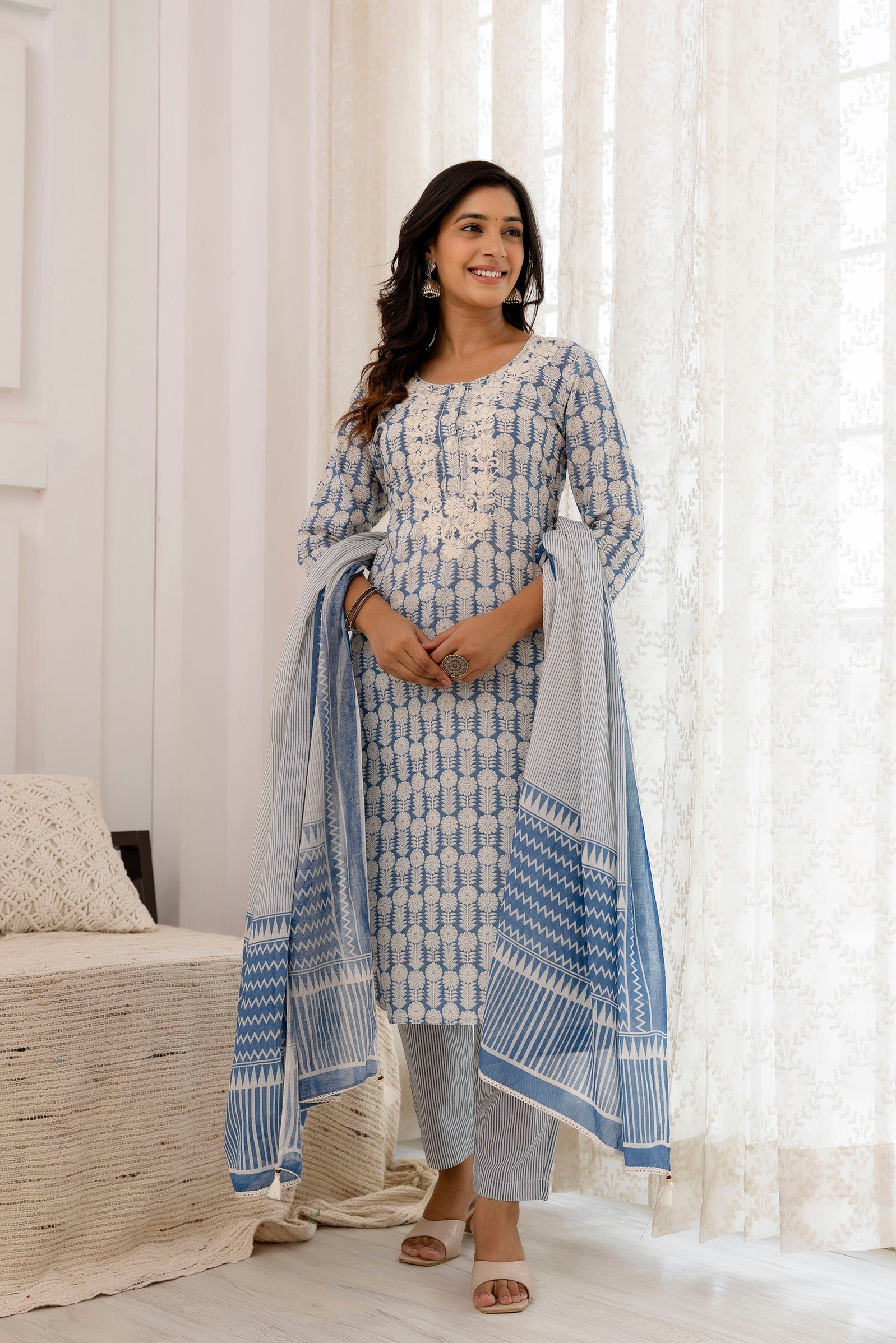 Fabric : Kurta & Bottom - Cotton Cambric ; Dupatta - Mulmul