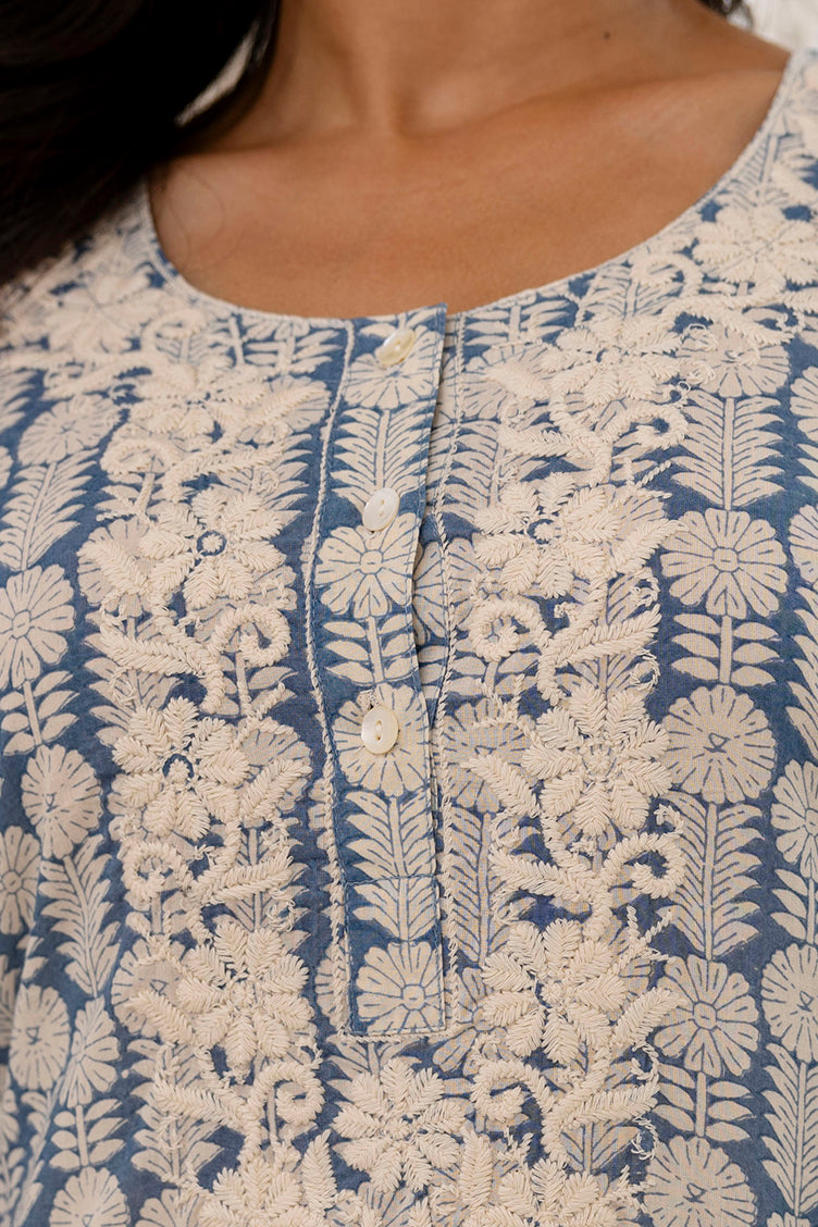 - Cotton Kurta with embroidery on neck