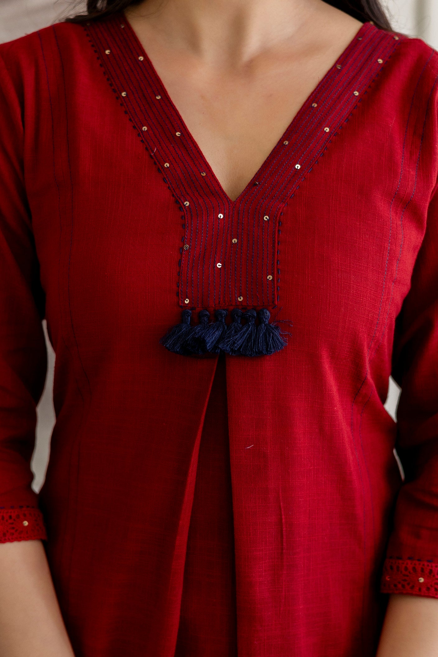 - Features handmade tassels and Lace on Sleeves